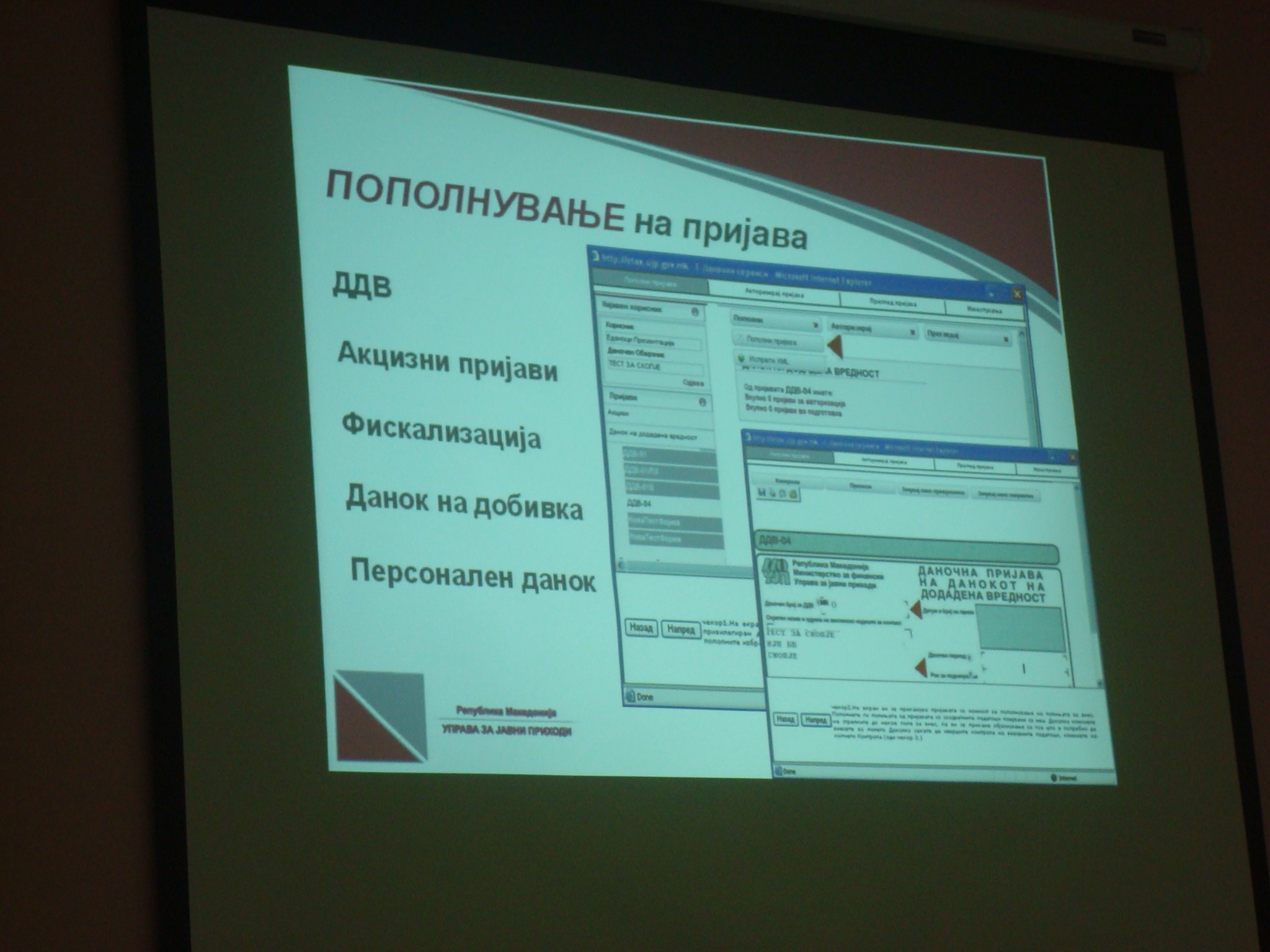Користењете современ систем за електронско поднесување на даночни пријави, е- Даноци http://etax.ujp.gov.mk/, и заштедете време, намалете ги административните трошоци и намалете го ризикот од човечки грешки при пријавување на данокот. Системот овозможува побрза и поефикасна обработка на голем број на податоци и висок степен на безбедност и сигурност на податоците. повеќе>>>