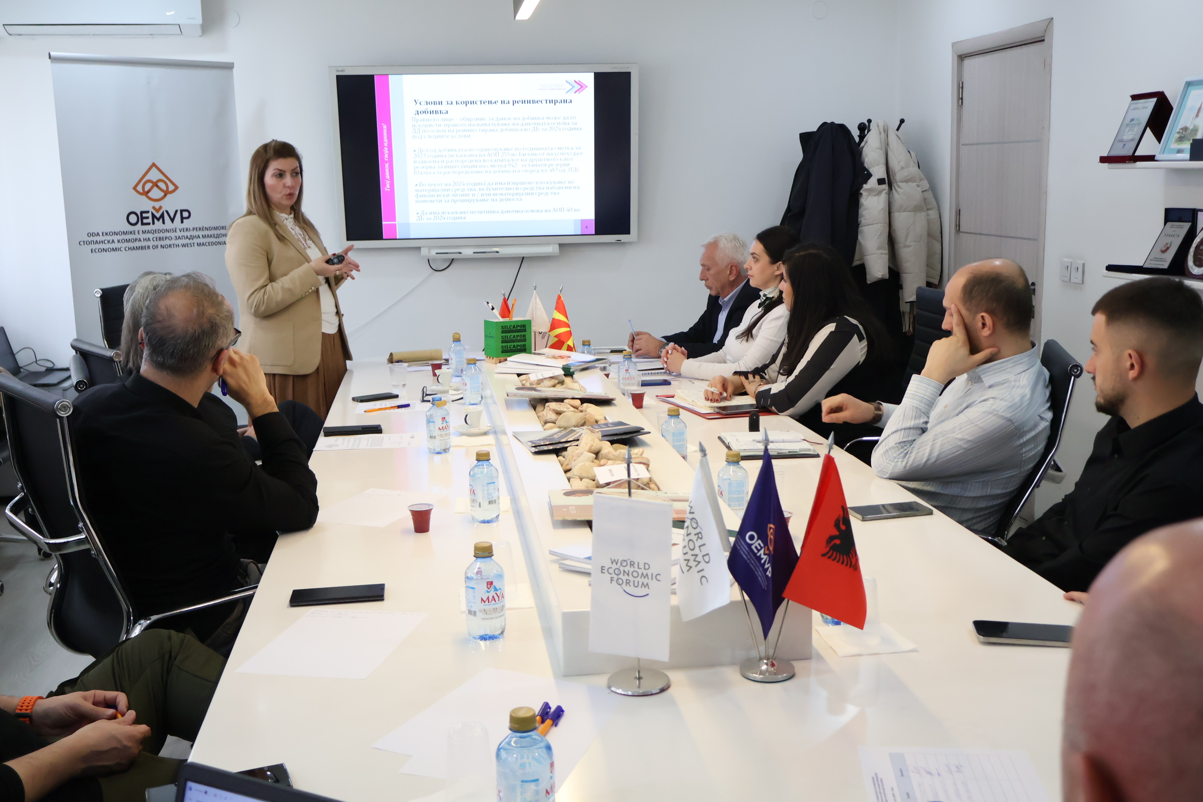 Преку презентација на тема „Практична примена на Законот за данокот на добивка со акцент на реинвестираната добивка“ пред присутните беа објаснети законските основи и условите за користење на реинвестираната добивка, дополнителните услови за нејзината употреба, а беа образложени и конкретни примери, како што се вложувањата во материјални и нематеријални средства, опрема набавена преку финансиски лизинг, и други случаи поврзани со даночните олеснувања, се со цел практично разбирање и правилна примена на истите. Претставниците на Коморите ја поздравија иницијативата на УЈП во насока на ефикасно спроведување на даночните политики и ја истакнаа подготвеноста на компаниите членки за активно учество во вакви дискусии кои придонесуваат за зајакнување на приватниот сектор и создавање поповолна деловна клима за инвестиции.
